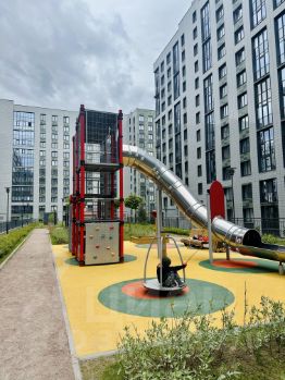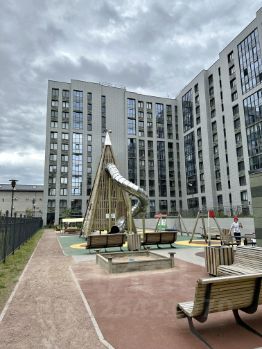 Фонтаны, современные детские площадки, зеленая зона на территории комплекса.