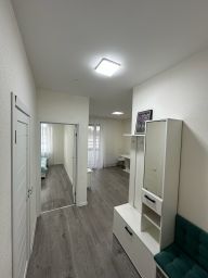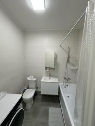В квартире сделан евроремонт, который создаёт атмосферу уюта и современности. Светлая комната с мебелью и окнами, выходящими на улицу, позволит вам наслаждаться естественным освещением. Просторная кухня площадью 14.65 кв. м оборудована всей необходимой техникой: холодильником, телевизором, микроволновой печью. Совмещённый санузел с ванной, + стиральная машина, обеспечивает максимальное удобство.