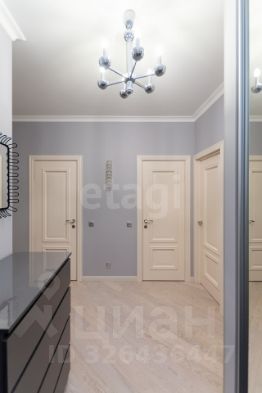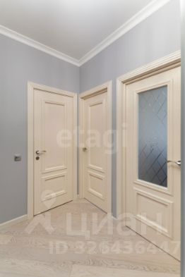 В интерьере использована долговечная паркетная доска, массивные итальянские межкомнатные двери и встроенные шкафы для организации хранения.