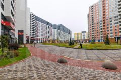 Закрытый двор с охраной обеспечивает безопасность и спокойствие. Для детей предусмотрена большая детская площадка, а взрослые смогут наслаждаться различными зонами для отдыха в благоустроенном двор-парке.