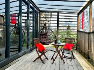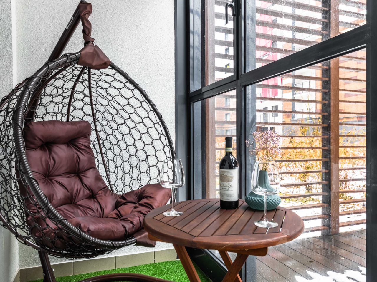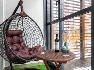 Терраса - 20 м2 с подвесными креслами и мебелью.