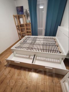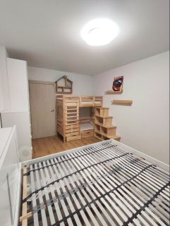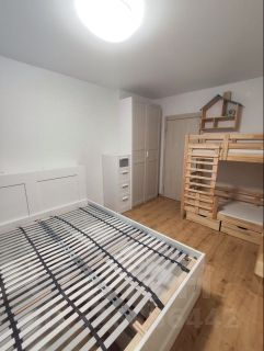 В спальне двухспальная кровать (160х200 см) без матраса и двухъярусная кровать с матрасами (спальное место 160х70 см). В кроватях имеются выдвижные ящики.