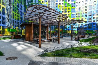 Хорошо обустроенный, огороженный двор с детскими и спортивными площадками, большим количеством зелени и дорожек для прогулок. Без коммерческих помещений. Есть возможность арендовать парковочное место в многоэтажном паркинге во дворе ЖК.