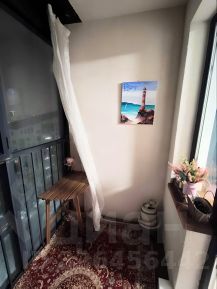 Обустроенная лоджия для летнего времяпрепровождения с большим шкафом для хранения сезонных вещей.