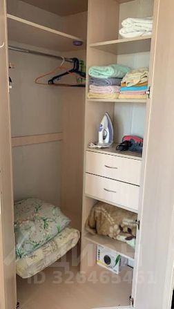 В гардеробе плечики, утюг и гладильная доска.