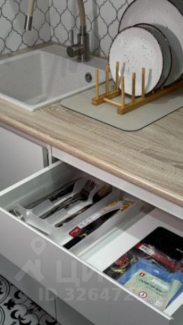Уже есть всё для жизни: холодильник, электрическая плита, микроволновка, посуда, приборы, чайник, полотенца.