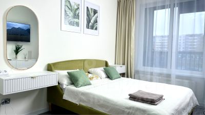 Большой телевизор со Смарт Тв, удобная кровать с ортопедическим матрасом (средней жесткости и жесткий).