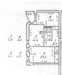 Удобная планировка (фото прилагается): изолированные комнаты 20 и 15 кв.м., между ними просторная кухня 14,6 кв.м. (с двумя окнами и качелями), раздельный санузел. Также есть 2 вместительных гардеробных, из малой комнаты выход на застекленную лоджию, из кухни на лоджию выходит окно.