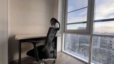 Квартира расположена на высоком этаже, из панорамных окон открывается прекрасный вид на город. Сделан качественный современный ремонт. Спальня оборудована двуспальной кроватью, есть вместительный шкаф, тумбы. Встроенная кухня с бытовой техникой, обеденная зона, на лоджии оборудован кабинет. Закрытый двор без машин с детскими и спортивными площадками.