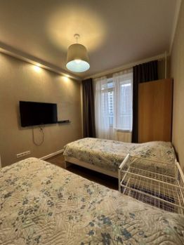 В квартире сделан евроремонт, который создаёт атмосферу уюта и комфорта. В наличии вся необходимая мебель и современная техника: кондиционер, холодильник, посудомоечная и стиральная машины, а также телевизор. Планировка продумана до мелочей, чтобы вы чувствовали себя как дома. Санузел выполнен в современном стиле.