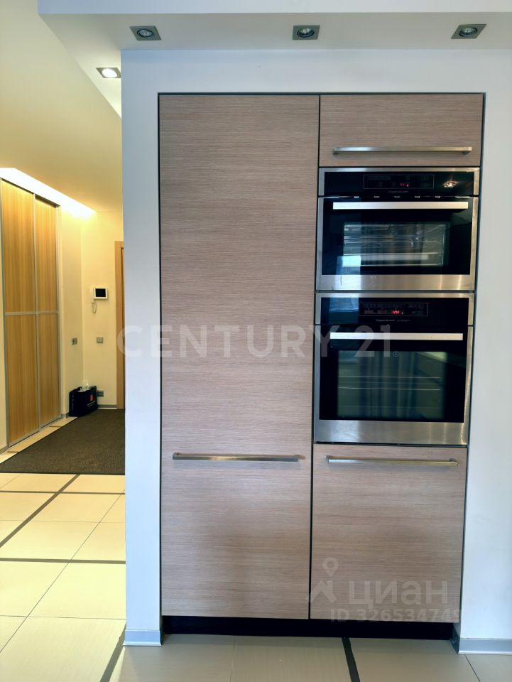 Стильная современная кухня с духовым шкафом, вытяжкой.