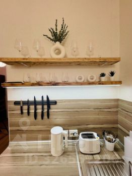 Кухня, оборудованная всем необходимым: электрическая варочная панель, холодильник, микроволновая печь, электрический чайник, блендер, тостер, турка, полный комплект посуды для приготовления пищи, столовой посуды, столовых приборов.