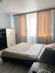Просторная видовая однокомнатная квартира ждёт своих гостей. Всего в 100 метрах от метро, квартира 40 кв метров с большим балконом и видом на башню Лахта — центра с 15 этажа.