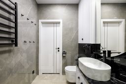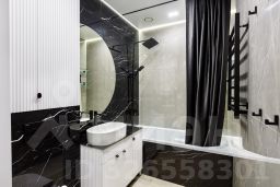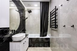 Санузел: Современный, совмещенный, выполненный в единой дизайнерской концепции.