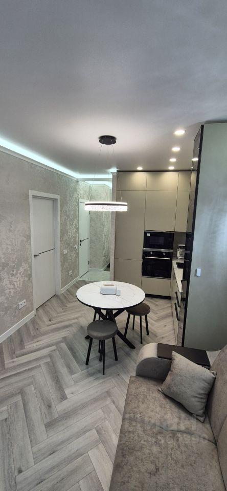 В квартире имеется вся необходимая мебель: шкафы, раскладной диван, 2х спальная кровать. Также установлена современная встраиваемая бытовая техника, включая холодильник, духовку, посудомоечную машину, стиральную машину, вытяжку и микроволновую печь, кондиционер (сплит система). В кухне предусмотрена удобная обеденная зона и зона для отдыха с тв.
