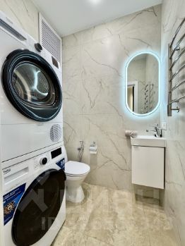 Санузел раздельный. Установлен проточный нагреватель воды. Подключены стиральная и сушильная машины.
