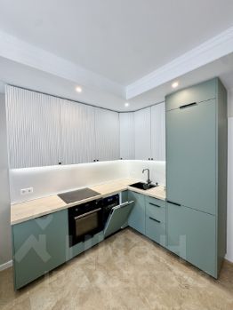 Кухня-гостиная оборудована встроенной кухней с необходимой техникой: посудомоечная машина на 45см, варочная поверхность, духовой шкаф, вытяжка, встроенный холодильник, эл.чайник. В раковине установлен измельчитель пищевых отдохов. Установлен фильтр питьевой и проточной воды. Кондиционер. Обеденный стол раскладывается, удобный просторный диван 2.20 в длину, который позволяет всей семье разместиться за просмотром телевизора.