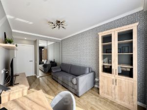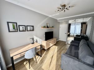 Кабинет с рабочим столом, книжным шкафом и вместительным глубоким шкафом для хранения вещей. Диван раскладывается. Для поддержания чистоты в квартире есть новый робот-пылесос.