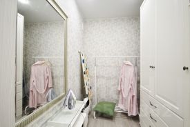 В качестве спального места удобная двуспальная кровать, и также есть дополнительный гостевой разборный диван. Отдельная гардеробная комната. В комнате установлен кондиционер.