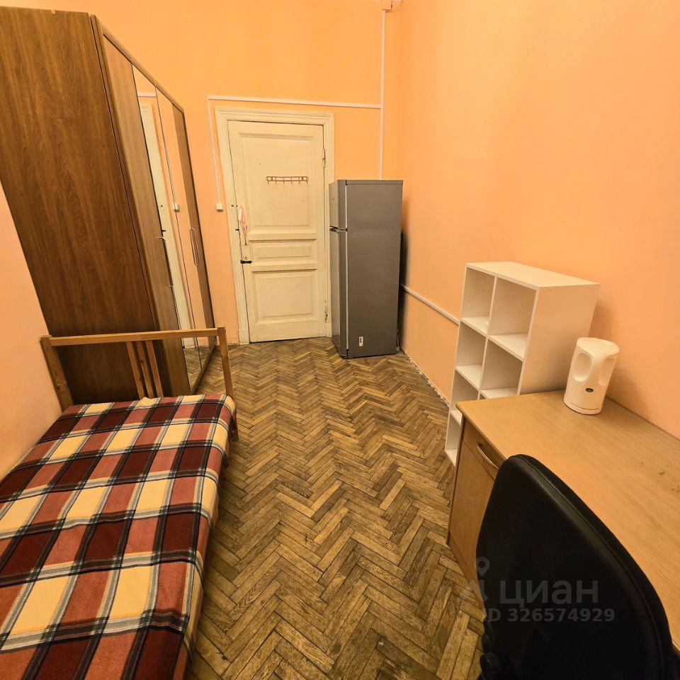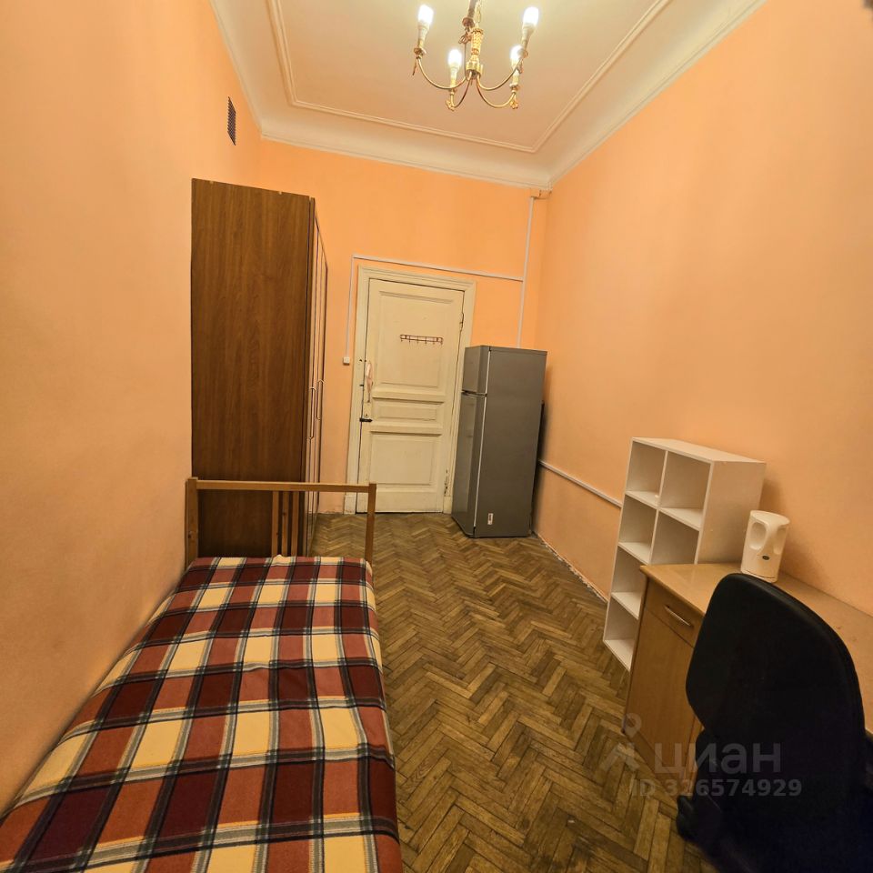 Комната 11 кв метров, закрывается на ключ. В комнате кровать, очень большой и вместительный шкаф с зеркалами, новый холодильник, стол, кресло, сушилка для одежды, электрический чайник. Из окна (стеклопакет) открывается красивый вид на Лиговский проспект. Отдельное место на большой и удобной кухне. Микроволновая печь на кухне, стиральная машина в ванной.
