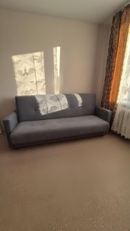 В квартире сделан косметический ремонт, поэтому можно сразу заехать и жить с комфортом. В комнате и на кухне есть вся необходимая мебель, а также бытовая техника: холодильник и стиральная машина. Ванная комната оборудована ванной и совмещена с санузлом.