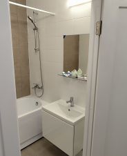 В квартире выполнен качественный евроремонт. На кухне есть вся необходимая мебель, чтобы вы могли сразу начать готовить свои любимые блюда. Из техники в вашем распоряжении телевизор и стиральная машина. В ванной комнате установлена ванна, санузел раздельный.