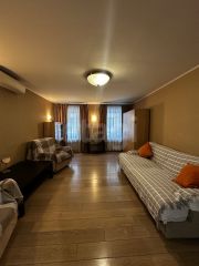 Огромная гостиная для семейных посиделок и домашнего отдыха. Хороший современный ремонт. Ранее не сдавалась - жили собственники.