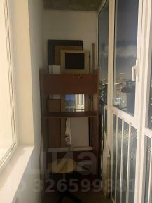 большая застекленная лоджия co стеллажом для хранения вещей.