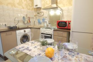 Кухня полностью оборудована, установлена новая газовая колонка, стиральная машина.