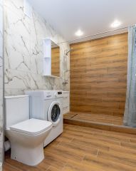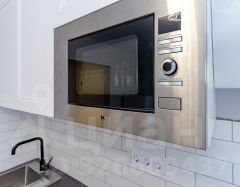 Их техники: посудомоечная машинка, стиральная машинка, встроенная микровлновая печь, духовой шкаф, варочная 3-х конфорочная панель.
