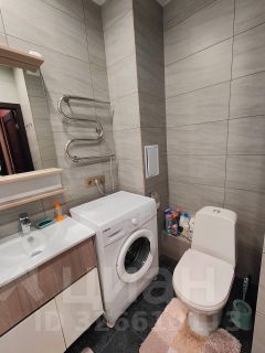 В ванной комнате присутствует стиральная машина, а также сушилка для полотенец.