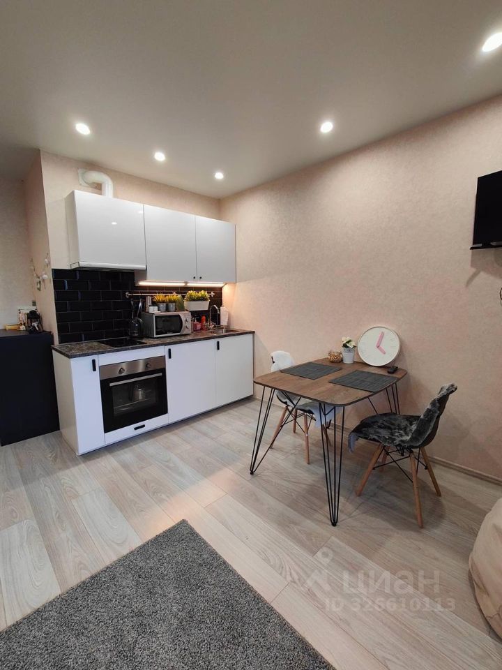 Здесь есть всё необходимое для комфортного проживания от одного до двух человек - удобная кровать, рабочее место, обеденный стол и оборудованная кухня (встроенный холодильник, индукционная плита, духовка, вытяжка, вместительные шкафы и мойка).