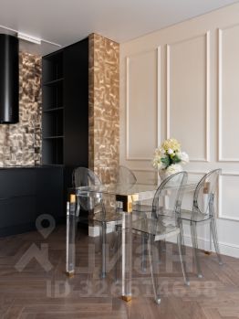 Планировка объединяет кухню и гостиную в единое функциональное пространство. В отделке использованы качественные и тактильно приятные материалы: натуральная инженерная доска (не искусственный пол), аккуратная классическая отделка стен, продуманный многоуровневый свет с различными сценариями. Интерьер выглядит цельно и сдержанно, подходит для повседневного проживания.