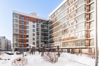 Большие окна наполняют квартиру естественным светом, западная ориентация формирует комфортную атмосферу в вечернее время.
