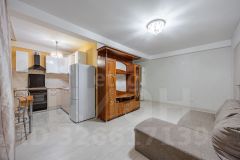 • Гостиная: Просторная гостиная с удобным раскладным диваном, который может служить дополнительным местом для отдыха. Из гостиной есть прямой выход на кухню.