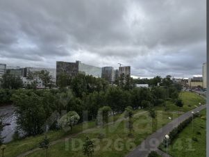 Вид из окна на зеленый берег реки Охта, застекленный балкон 5 м. На этаже всего 6 квартир.