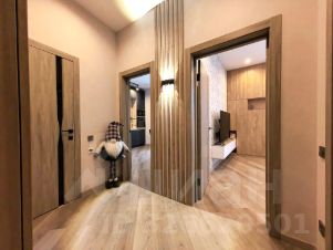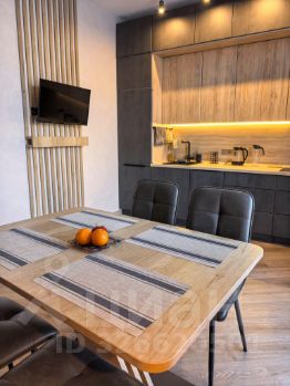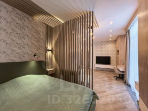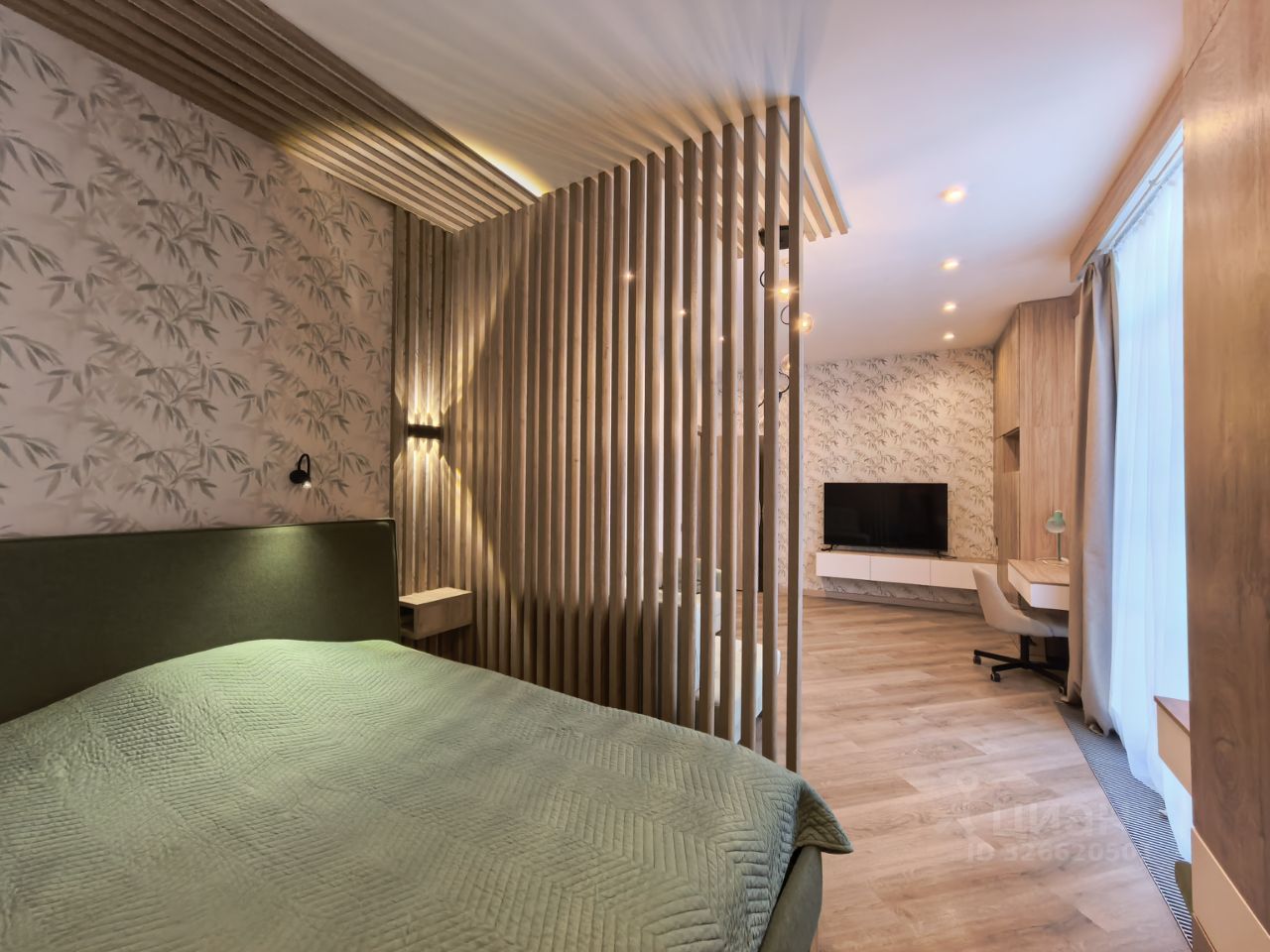 Высота потолков 3 м, большие панорамные окна в пол. В апартаментах проведен качественный ремонт (2022-23г.) по дизайн-проекту в стиле эко-минимализм. Пространство максимально продумано и оборудовано, полностью готово для комфортной жизни. В просторной комнате 25 м кв. выполнено грамотное зонирование: спальня отгорожена от гостиной реечной перегородкой. Двуспальная кровать с хорошим ортопедическим матрасом средней жесткости. Удобный угловой дизайнерский диван в гостиной (мебель Братьев Баженовых) может служить еще одним спальным местом. В комнате: большой ЖК смарт-телевизор нового поколения, навесная тумба, рабочий стол, компьютерное кресло, косметический стол, банкетка, зеркало, настенные часы, журнальный столик, гардеробный шкаф и стеллажный шкаф со встроенным мини-сейфом. Мебель не громоздкая, но вместе с тем функциональная и вместительная. Различные сценарии освещения пространства.