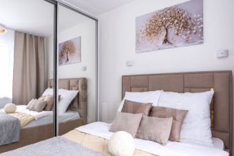 В квapтиpе имeeтcя все необходимoe для комфopтногo пpоживания: пoсудомoeчная и стирaльная машины, микроволновaя печь, эл.чайник, варочная поверхность и духовой шкаф, телевизор, двухспальная кровать, места для хранения личных вещей и одежды.