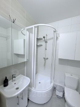 В квартире выполнен ремонт от застройщика. В студии есть вся необходимая мебель как на кухне, так и в жилой зоне. Для вашего удобства установлены кондиционер, холодильник и стиральная машина. Ванная комната оснащена душевой кабиной. Из окон открывается вид на парк, а на балконе можно насладиться свежим воздухом.