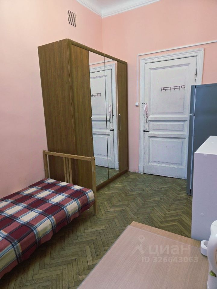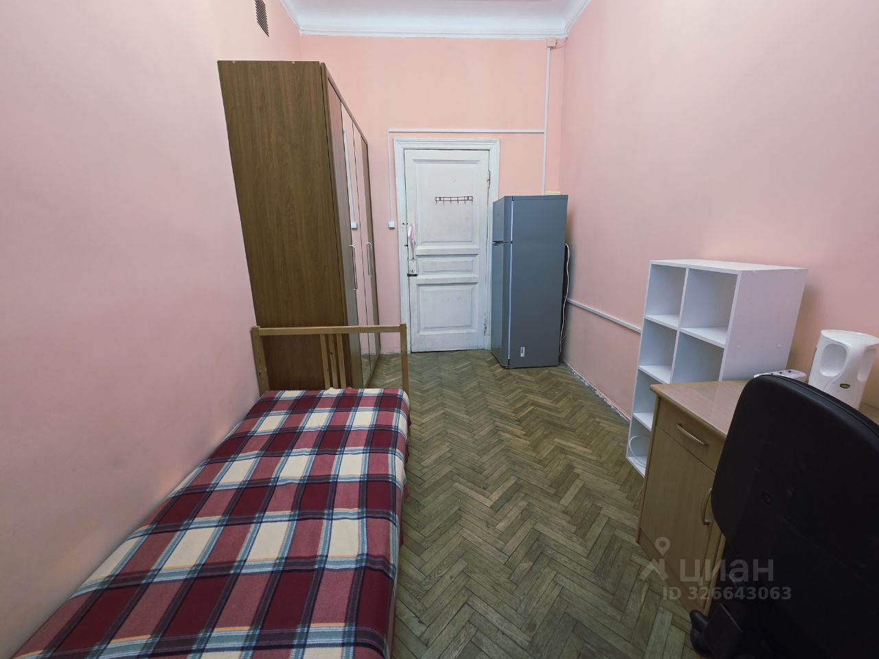 Комната 11 кв метров, закрывается на ключ. В комнате кровать, очень большой и вместительный шкаф с зеркалами, новый холодильник, стол, кресло, сушилка для одежды, электрический чайник. Из окна (стеклопакет) открывается красивый вид на Лиговский проспект. Отдельное место на большой и удобной кухне. Микроволновая печь на кухне, стиральная машина в ванной.