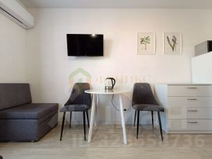 Студия полностью оснащена необходимой мебелью и техникой для комфортного проживания, вплоть до кондиционера.