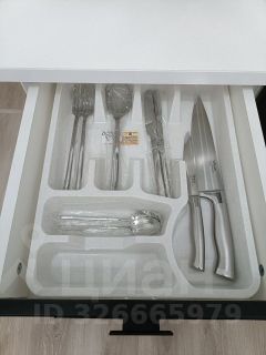 Студия укомплектована всей необходимой бытовой техникой и посудой для жизни: электрическая плита с духовкой, холодильник с функцией No Frost, стиральная машина, микроволновая печь, чайник, кастрюля, сковородка, столовые приборы, полотенца.