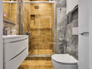 В квартире два совмещённых санузла — с душевой кабиной и ванной, что особенно удобно для семьи или пары.