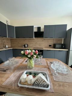 кухня со всей необходимой техникой, посудой и домашней утварью