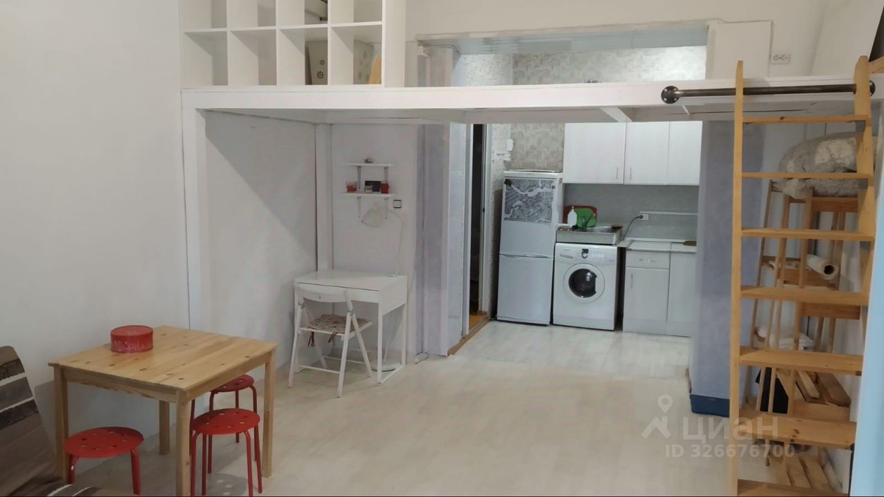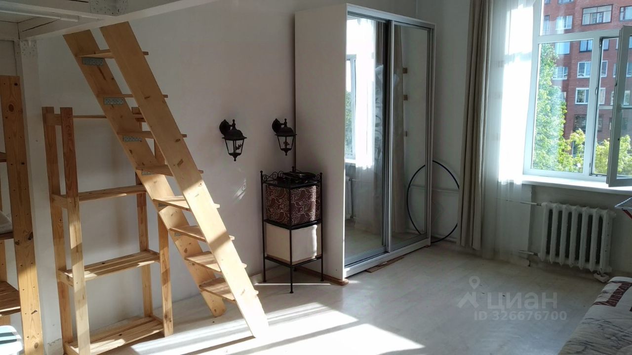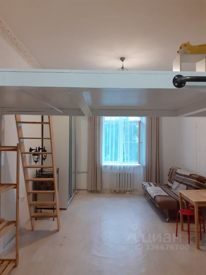 Сдаётся на длительный срок просторная светлая студия, в бывшем общежитии. Площадь по полу 30 кв.м. + площадь 2го яруса 8 кв.м. Высота потолка 3,5 м.
