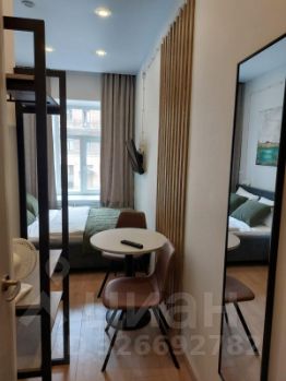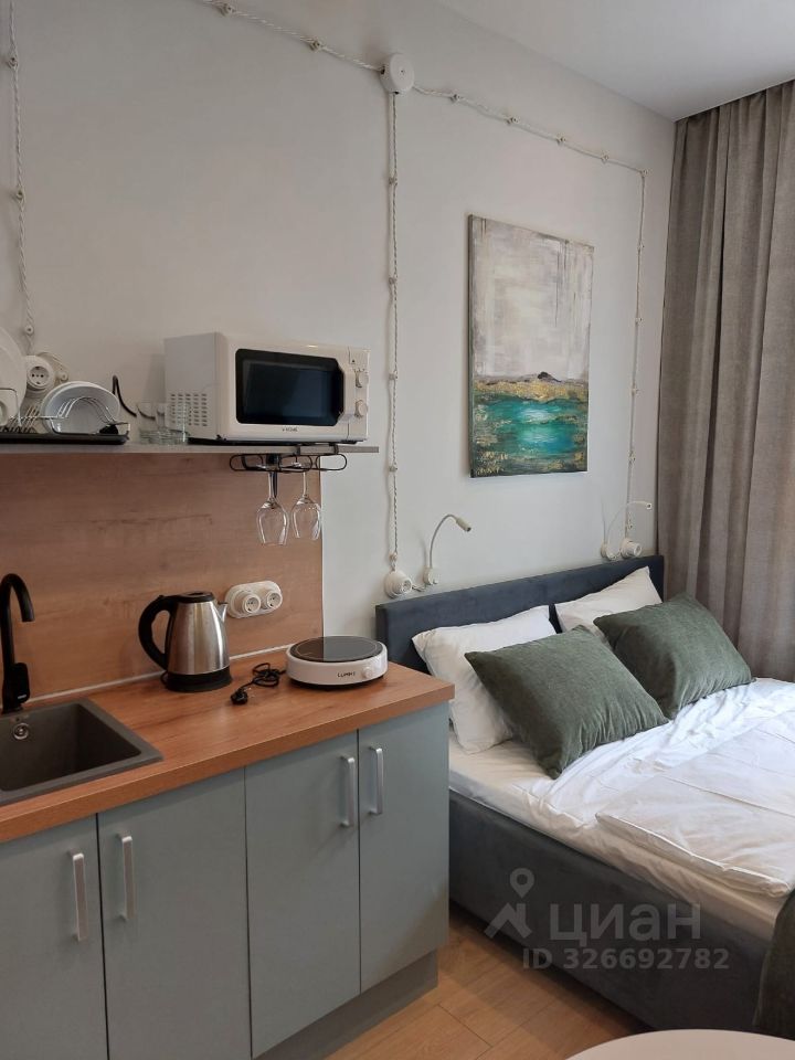 Небольшая студия оформлена в современном стиле, что создает атмосферу уюта и комфорта. Здесь вы сможете насладиться спокойствием и тишиной после насыщенного дня, а также продуктивно поработать в спокойной обстановке.