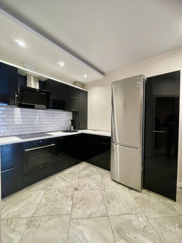 Мебель: кухонный гарнитур, кровать, стол и стулья, просторный шкаф, кожаный диван. Техника: холодильник, стиральная машина, электрическая плита, духовой шкаф, телевизор, посудомоечная машина.