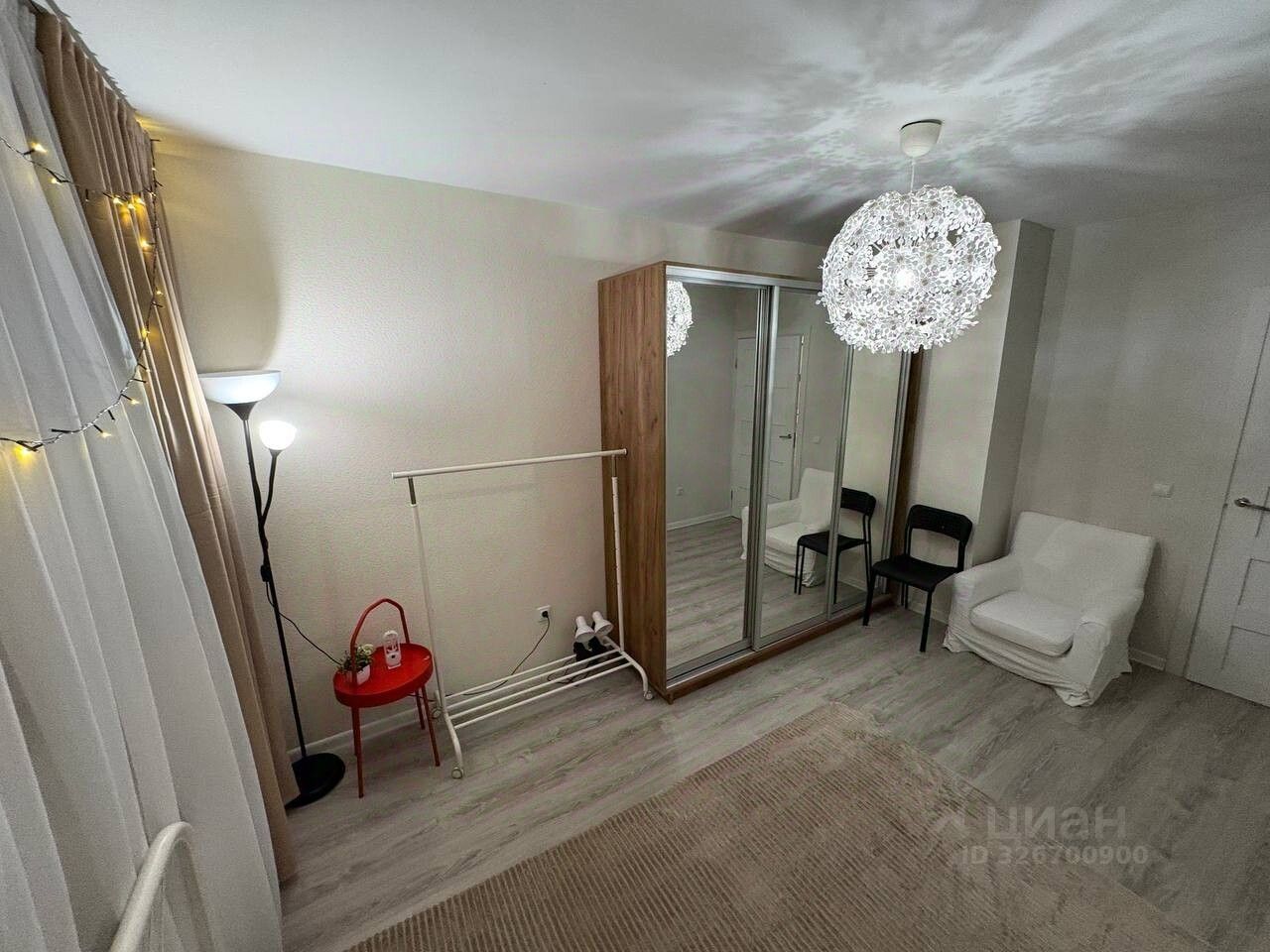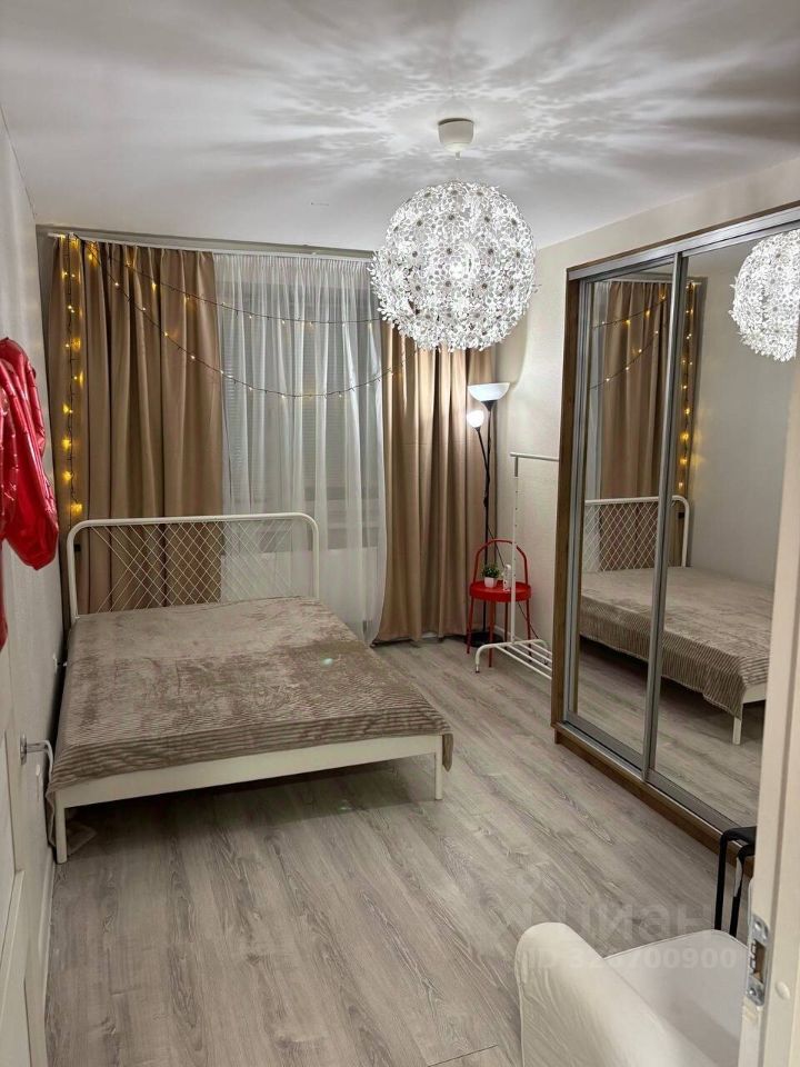 - в комнате расположена кровать 2х спальная, вместительный 3х створчатый шкаф купе, с зеркалами во всю высоту шкафа- это увеличивает пространство в комнате и придаёт больше света. Комната правильной формы, что позволит сделать перестановку по Вашему желанию.