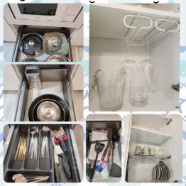 функциональная кухонная зона с встроенной техникой(варочная панель, посудомоечная машина, холодильник, микроволновка);