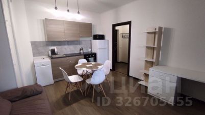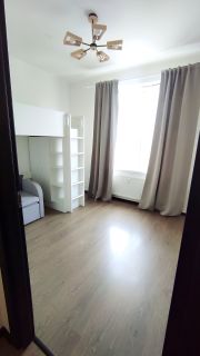 Оснащение квартиры: кухонная мебель, диван, обеденный стол, стулья, холодильник, варочная поверхность, микроволновая печь, посудомоечная машина, телевизор. В комнате — детская кровать-чердак со шкафом и стеллажом и небольшой диван. Санузел совмещённый, есть стиральная машина и пылесос.